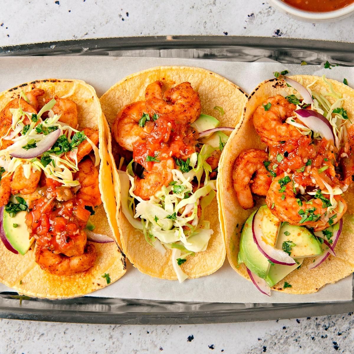 With a hot skillet, some corn tortillas and your favorite taco toppings, spicy shrimp tacos will be on the table...