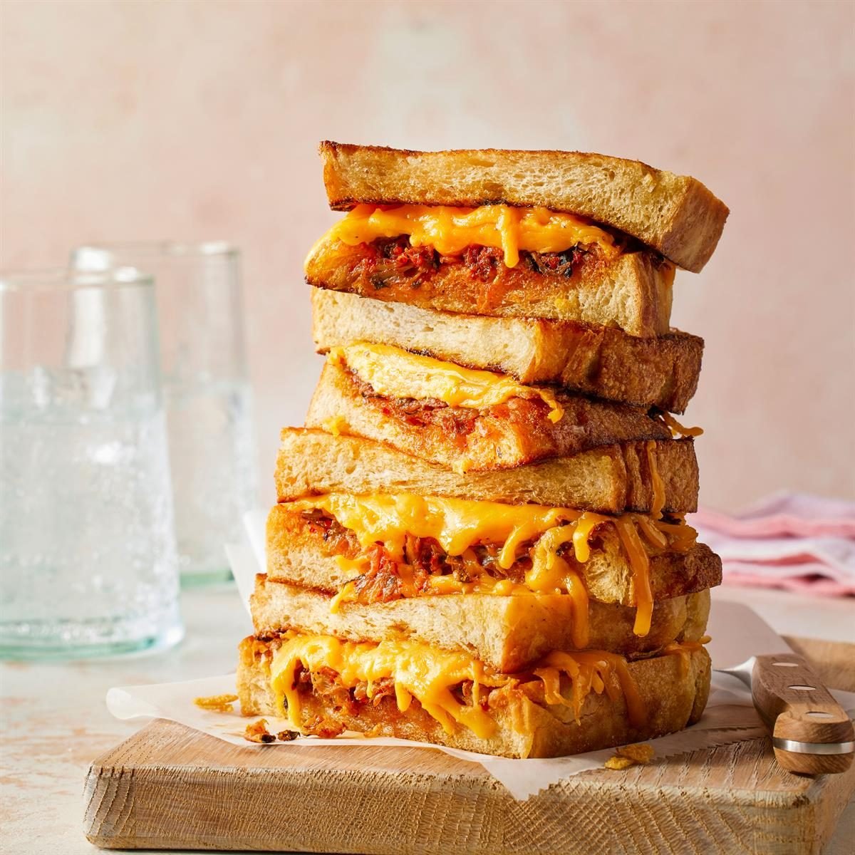 Spicy fermented veggies and twice-toasted sourdough are the genius ways we maximize flavor in our kimchi grilled cheese.